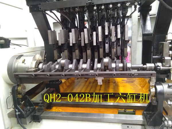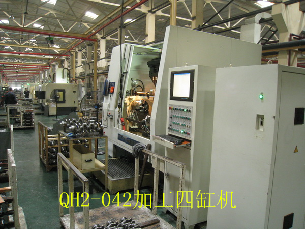 QH2-042變力曲軸圓角滾壓及滾壓校直機床(發明專利號1823602)是與武漢理工大學共同開發的一款高檔數控設備。該機床為九鉗直立布置,可以一次性對所有四缸曲軸完成的變力滾壓,自動檢測和自動滾壓校直的加工。該機床帶有測力器,自動檢測工件零位,自動檢測記錄工件加工情況和滾輪破碎自動檢測等功能,可以完全保證工件的加工質量。具備與著名德國的圓角滾壓設備制造商Hegenscheidt公司產品同樣的功能,具有極高的性價比。